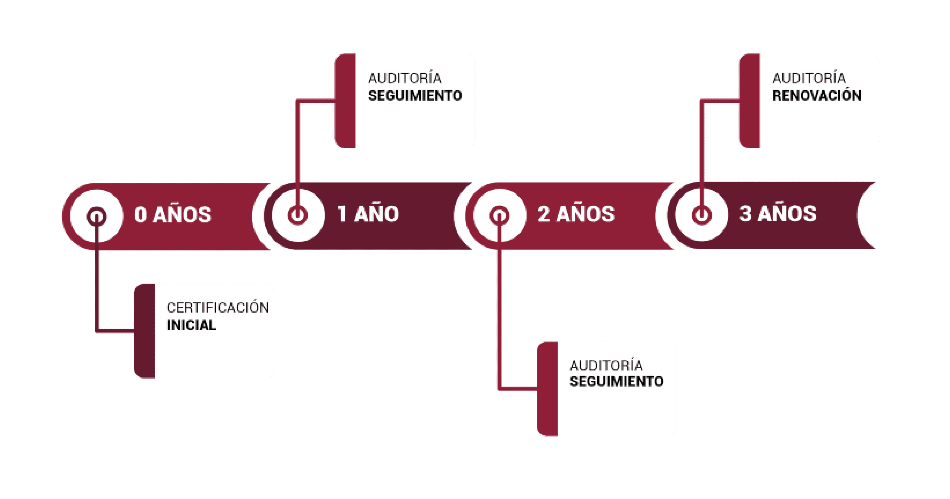 El certificado tiene una validez de 3 años, con auditorías anuales de mantenimiento.